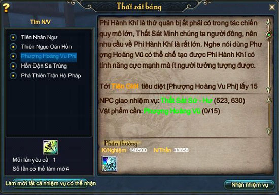 Chỉ có nhiệm vụ màu xanh khi hoàn thành mới nhận thưởng được Thất Sát Lệnh - Hư.