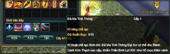 - Kĩ năng chế tạo Đả Ma Tinh Thông chia thành 7 cấp học, tương ứng với các cấp độ từ 60,70, 80, 90, 95, 99 và 100. Khi đạt tới các cấp độ trên, nhân vật có thể sử dụng Sách kĩ năng Đả Ma Tinh Thông có thể nâng cao cấp độ kĩ năng, để chế tạo Canh Kim Thạch cấp cao hơn.
