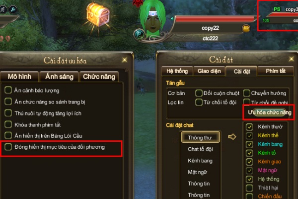 Bỏ tích vào dòng "Đóng hiển thị mục tiêu của đối phương" trong giao diện "Ưu hóa chức năng".